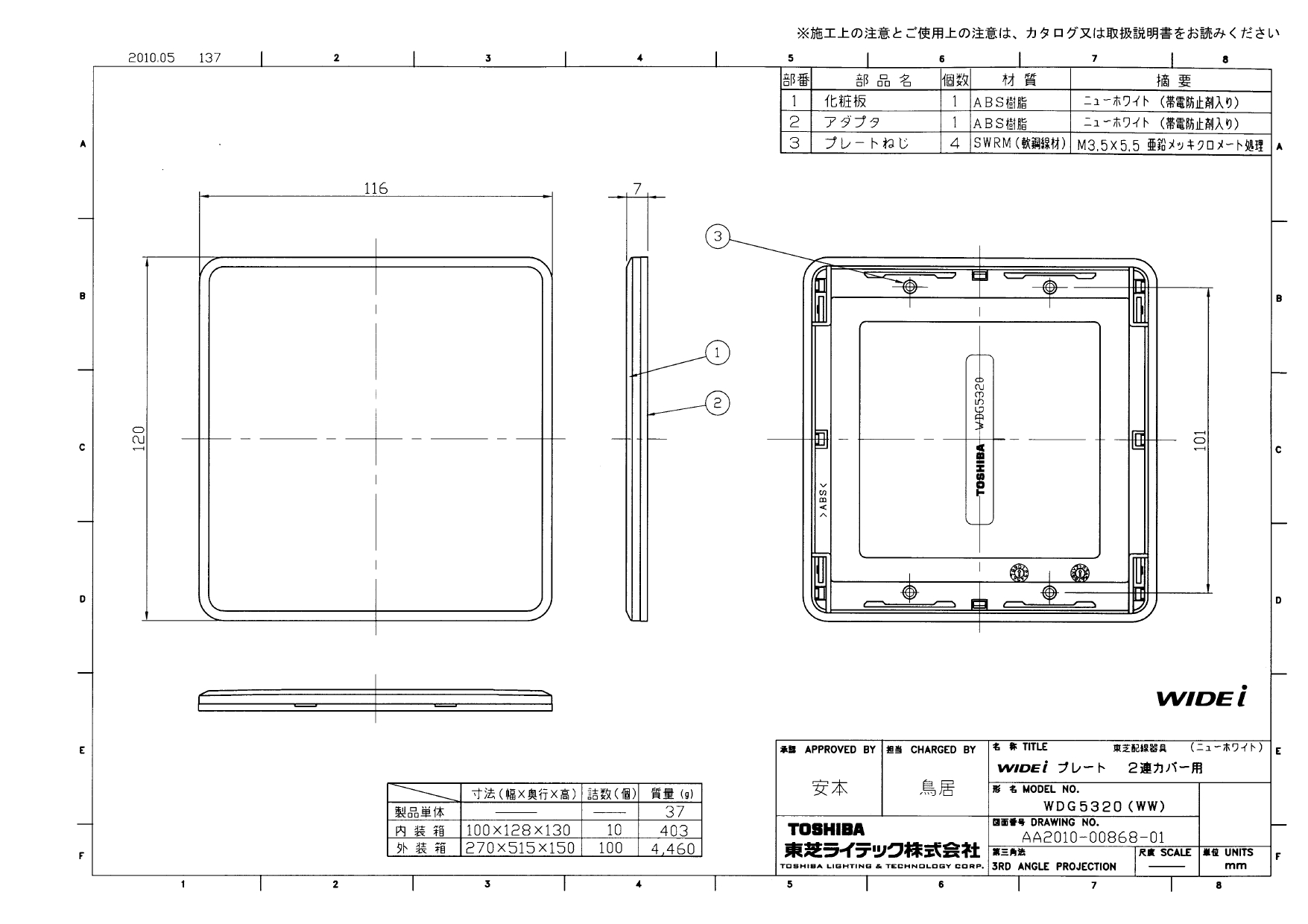 WDG5320(WW) カバープレート 2連 ニューホワイト