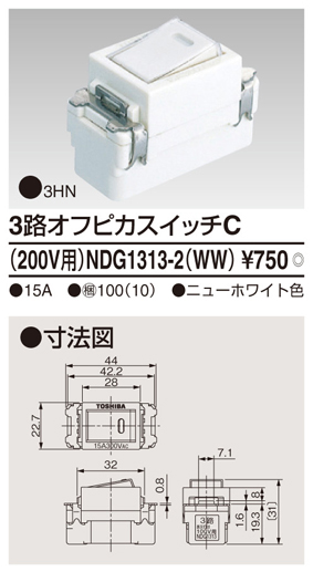 NDG1313-2(WW) 3路オフピカスイッチC(200V用)