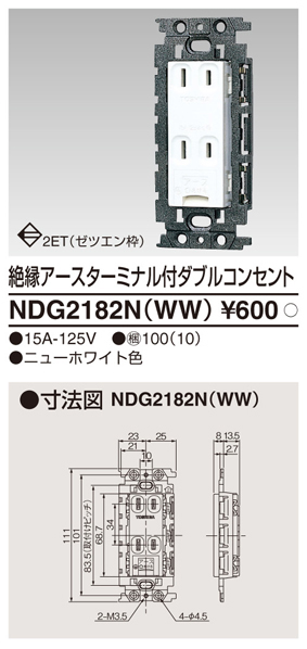 NDG2182N(WW) 絶縁アースターミナル付ダブルコンセント ニューホワイト