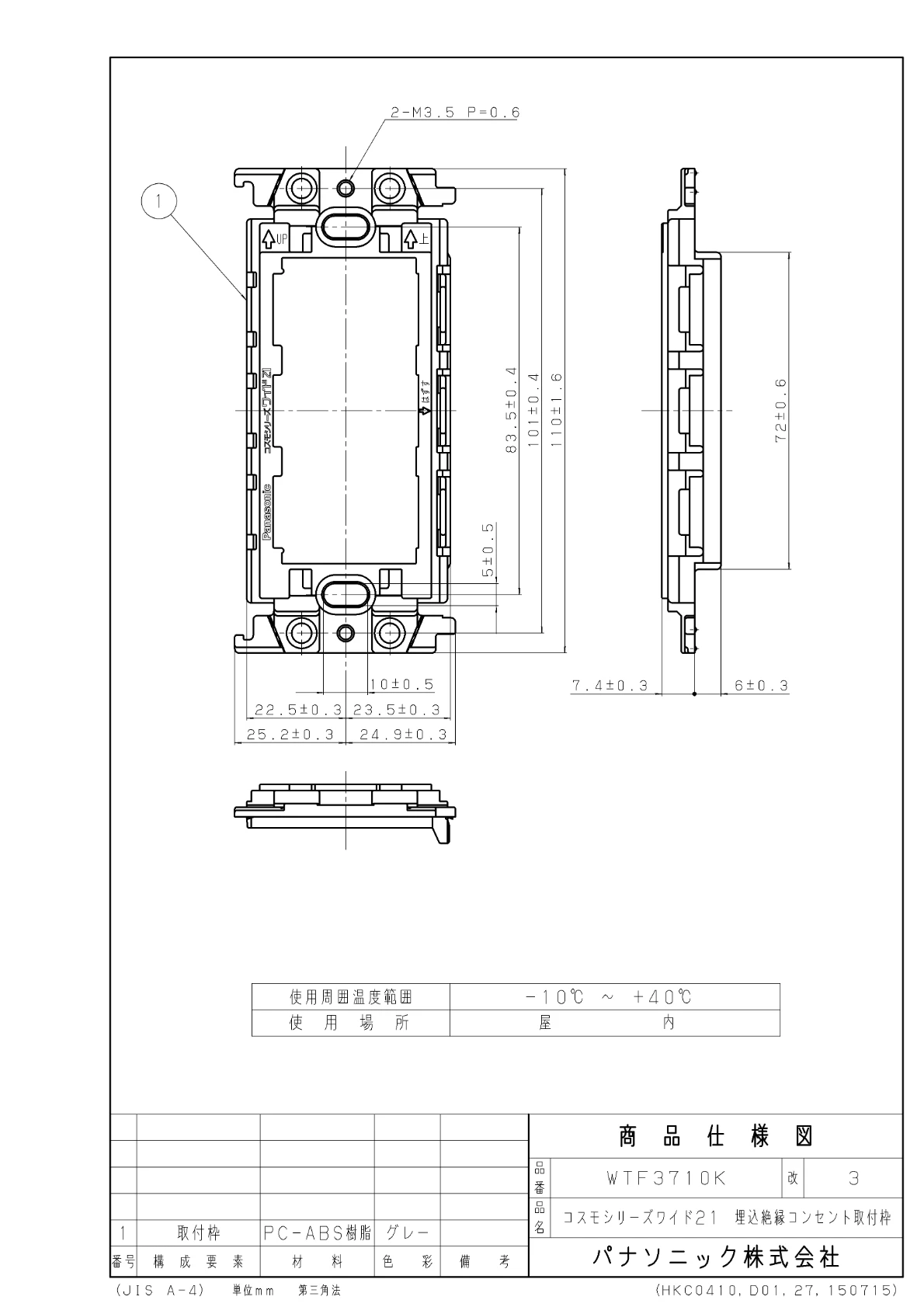 コスモシリーズワイド21、ニューコスモシリーズのスイッチの取付は出来ません。ボックス取付時のビス取付トルクは0.4Nm{4kgf・cm}以下としてください。