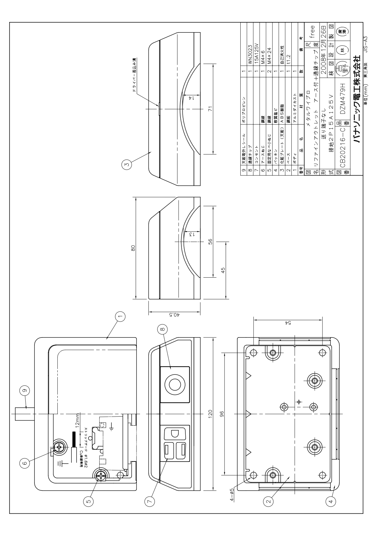 ●仕様 アース付パソコン電源・通線チップ付メタルワイプロ1ウェイ・2ウェイ共用アルミダイカスト製送り端子なし