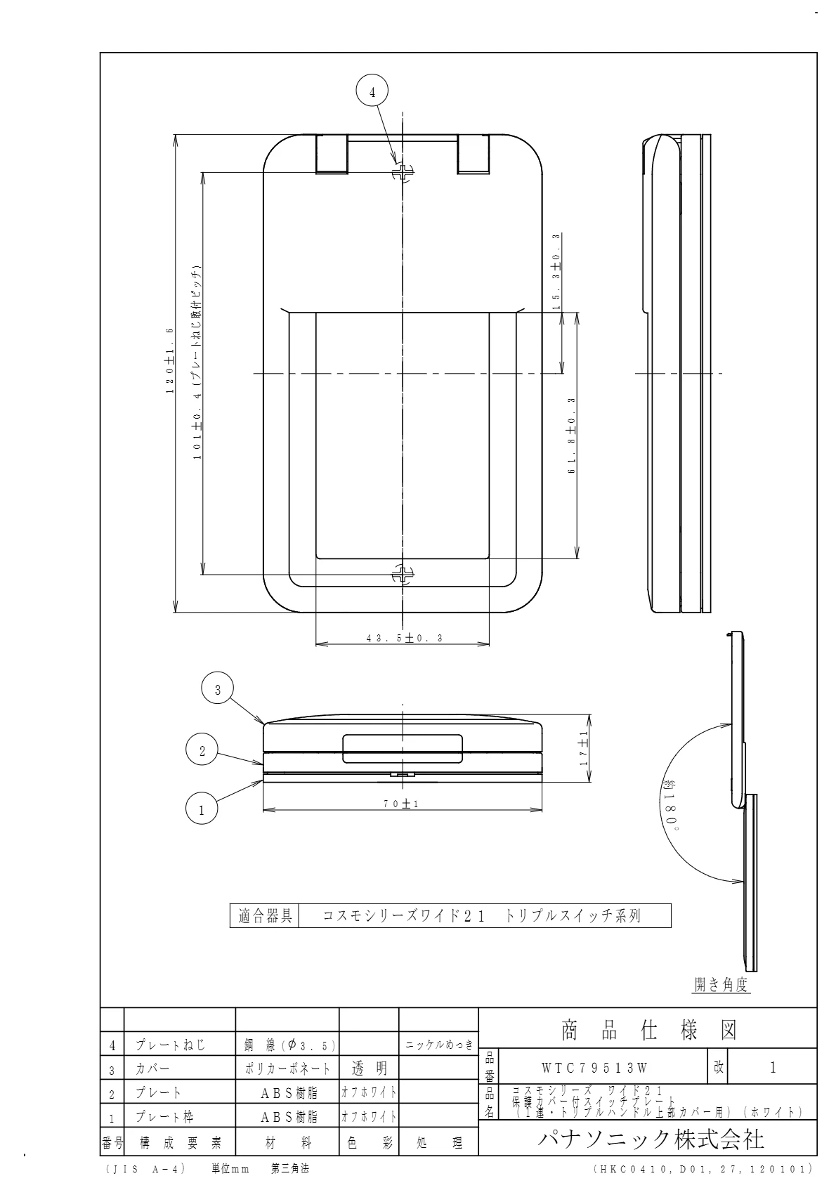 - 電設資材 > パナソニック(Panasonic) > ワイド配線器具 > スイッチプレート > 1連用