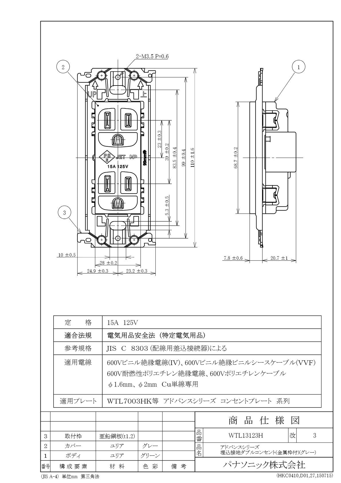 - 電設資材 > パナソニック(Panasonic) > アドバンスシリーズ > コンセント > 接地ダブル