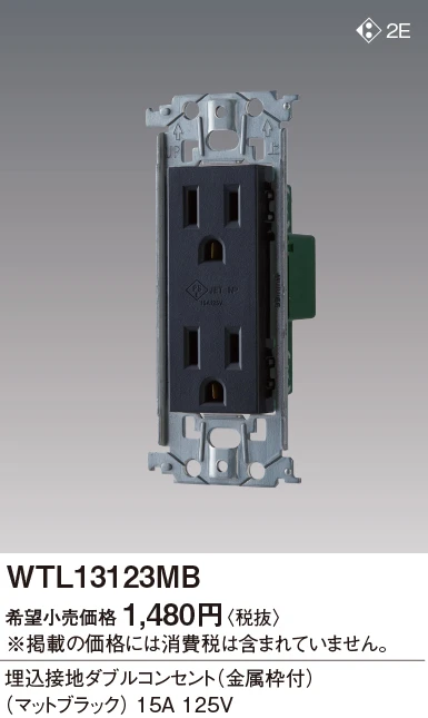 品番:WTL13123MB品名:SO-STYLE 埋込接地ダブルコンセント(金属枠付)(マットブラック)