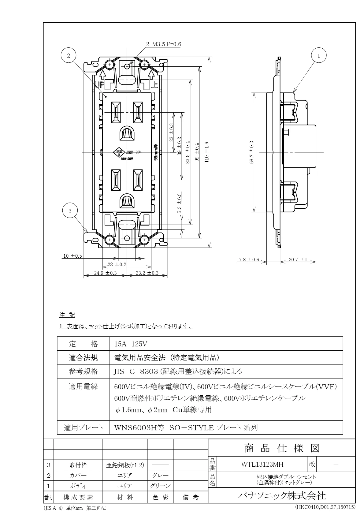 - 電設資材 > パナソニック(Panasonic) > SO-STYLE > コンセント