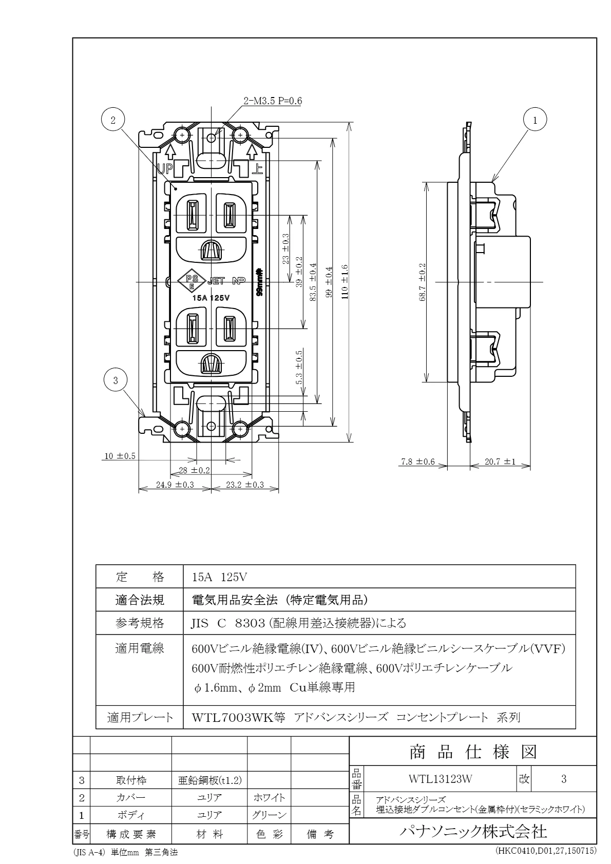 - 電設資材 > パナソニック(Panasonic) > アドバンスシリーズ > コンセント
