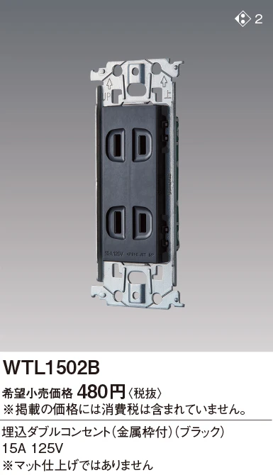 品番:WTL1502B品名:アドバンスシリーズ 埋込ダブルコンセント(金属枠付)(ブラック)