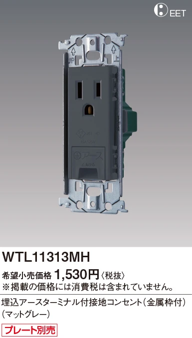 品番:WTL11313MH品名:SO-STYLE 埋込アースターミナル付接地コンセント(金属枠付)(マットグレー)