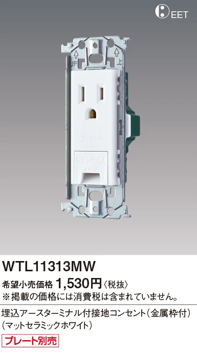 品番:WTL11313MW品名:SO-STYLE 埋込アースターミナル付接地コンセント(金属枠付)(マットセラミックホワイト)