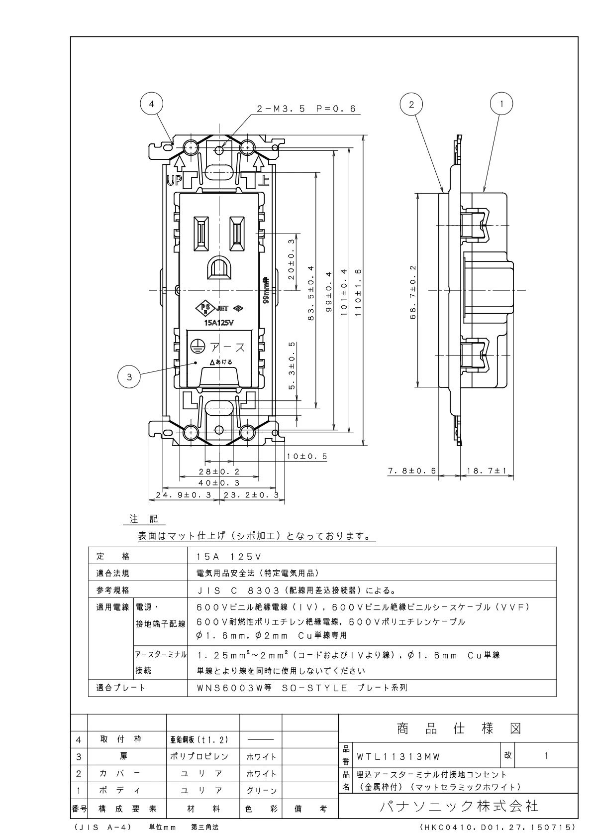 - 電設資材 > パナソニック(Panasonic) > SO-STYLE > コンセント