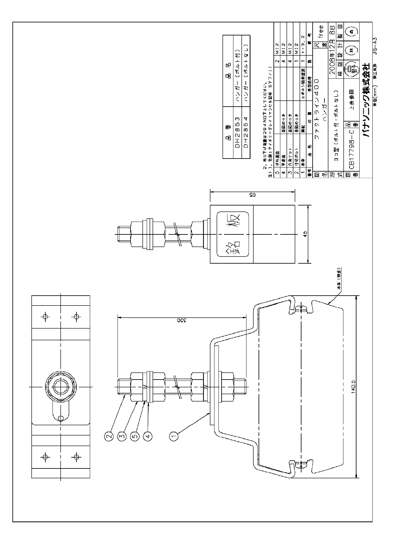 DH2854 ファクトライン400 ハンガー(ボルトなし)ヨコ型