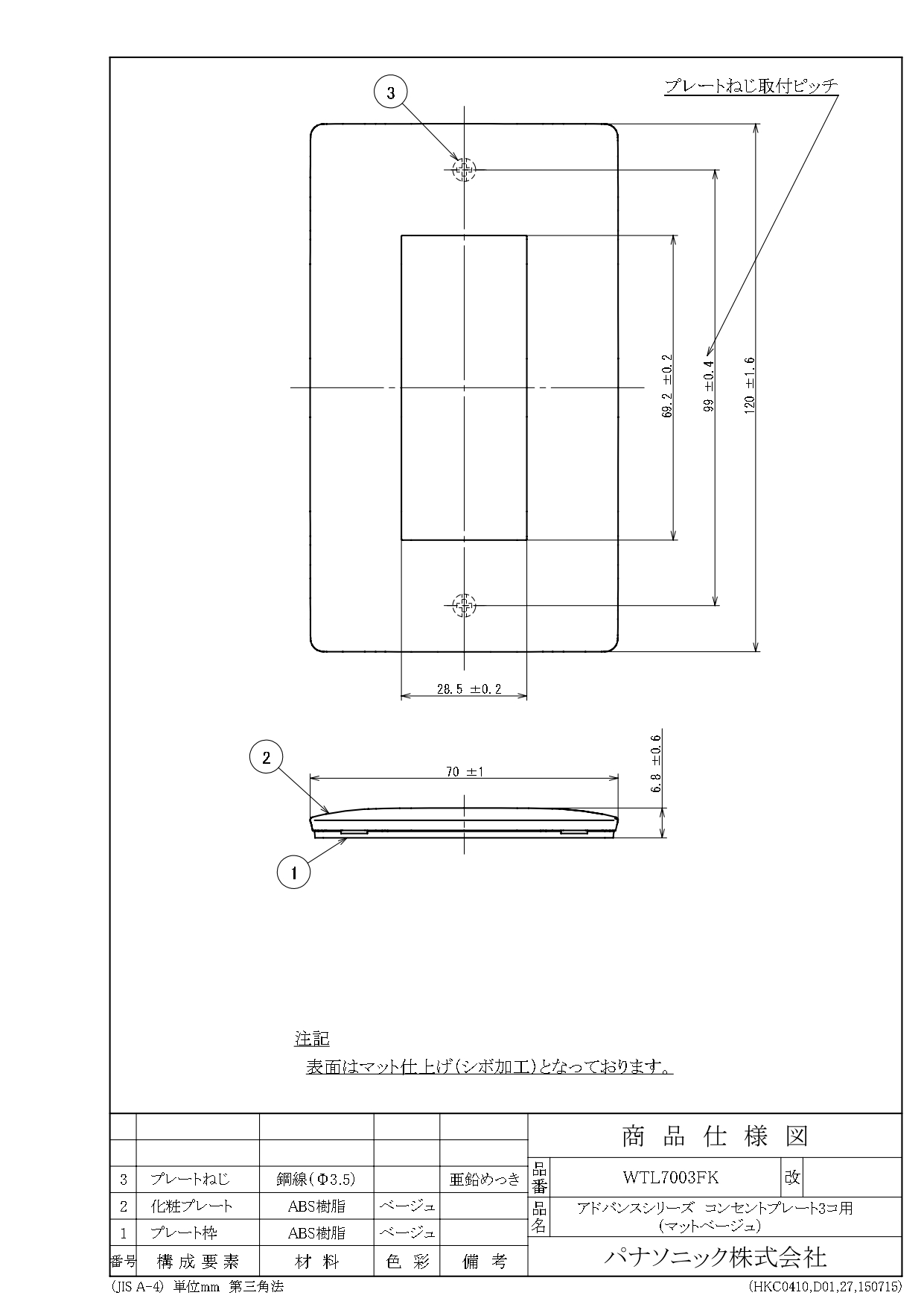 ※他のシリーズとの併用はできませんのでご注意ください。●品名:アドバンスシリーズ コンセントプレート3コ用 (マットベージュ)
