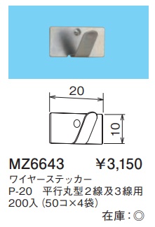 MZ6643 ワイヤーステッカー(P-20・平行丸型2線及3線用)200入(50コ×4袋)