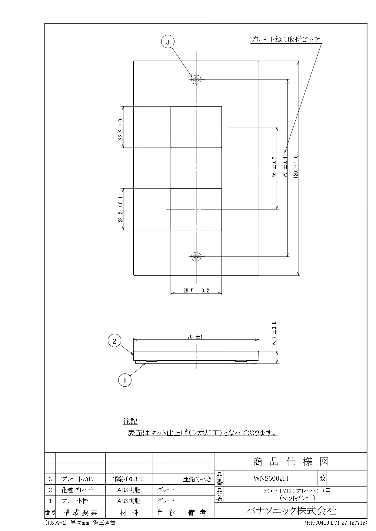 品番:WNS6002H品名:SO-STYLEプレート2コ用(マットグレー)