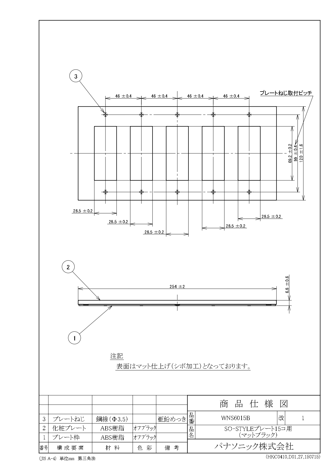 品番:WNS6015B品名:SO-STYLEプレート15コ用(マットブラック)