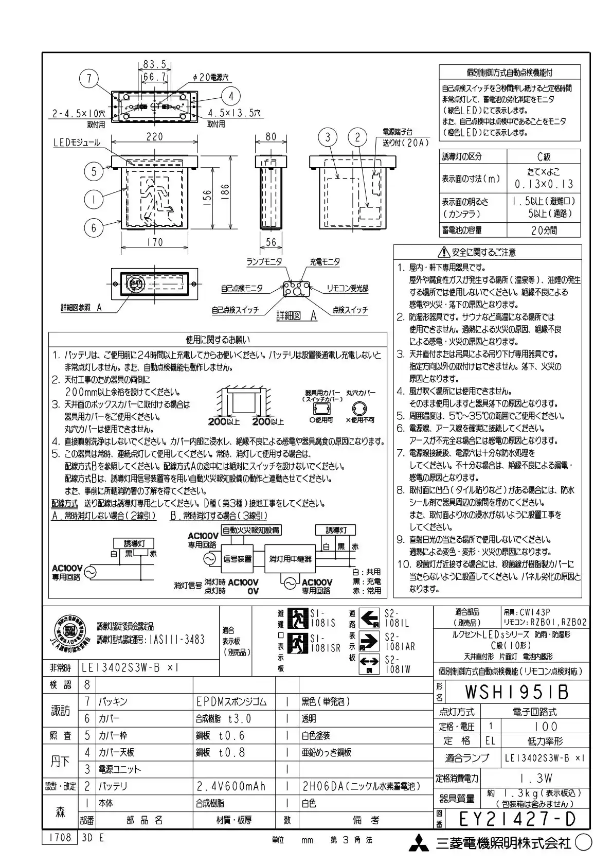 - 誘導灯(非常灯) > 防湿・防雨形(天井直付・吊下兼用) > 通路誘導灯 > 三菱電機C級