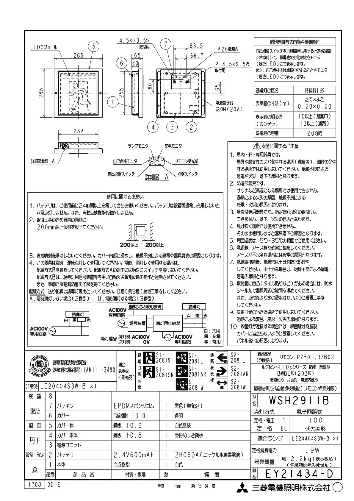 - 誘導灯(非常灯) > 防湿・防雨形(壁直付) > 避難口誘導灯 > 三菱電機B級・BL形