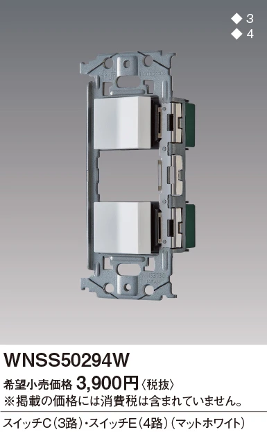 品番:WNSS50294W品名:SO-STYLE埋込スイッチセット(スイッチC、E)(マットホワイト)