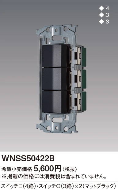 品番:WNSS50422B品名:SO-STYLE埋込スイッチセット(スイッチE、C×2)(マットブラック)