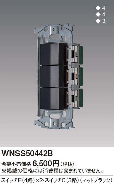 品番:WNSS50442B品名:SO-STYLE埋込スイッチセット(スイッチE×2、C)(マットブラック)