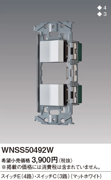 品番:WNSS50492W品名:SO-STYLE埋込スイッチセット(スイッチE、C)(マットホワイト)