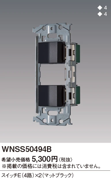 品番:WNSS50494B品名:SO-STYLE埋込スイッチセット(スイッチE×2)(マットブラック)