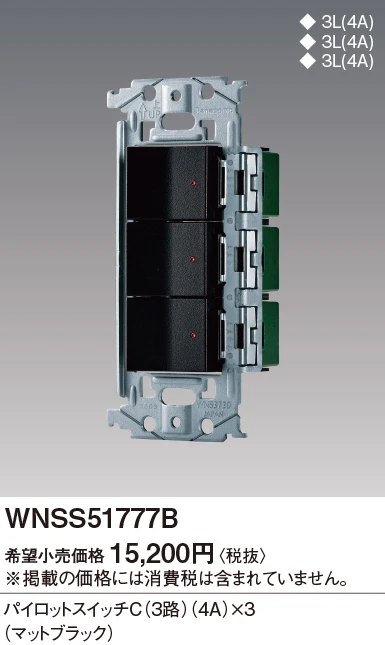 品番:WNSS51777B品名:SO-STYLE埋込スイッチセット(パイロットスイッチC4A×3)(マットブラック)