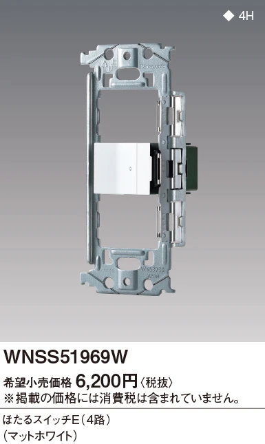 品番:WNSS51969W品名:SO-STYLE埋込スイッチセット(ほたるスイッチE)(マットホワイト)