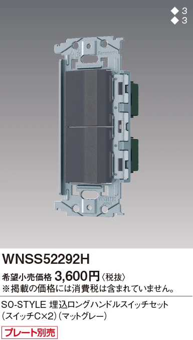 品番:WNSS52292H品名:SO-STYLE埋込ロングハンドルスイッチセット(スイッチC×2)(マットグレー)