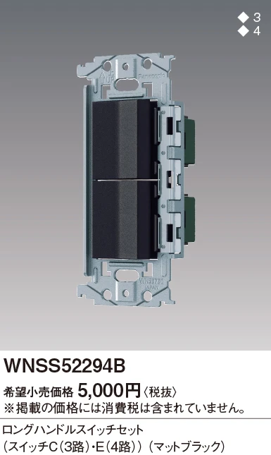 WNSS52294B SO-STYLE埋込ロングハンドルスイッチセット(スイッチC、E)(マットブラック)