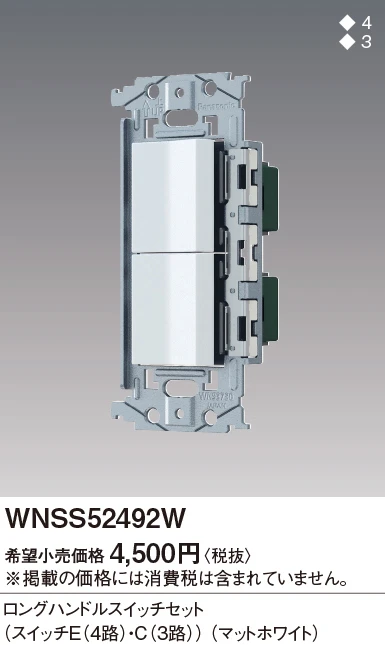 品番:WNSS52492W品名:SO-STYLE埋込ロングハンドルスイッチセット(スイッチE、C)(マットホワイト)