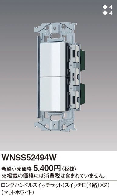 品番:WNSS52494W品名:SO-STYLE埋込ロングハンドルスイッチセット(スイッチE×2)(マットホワイト)