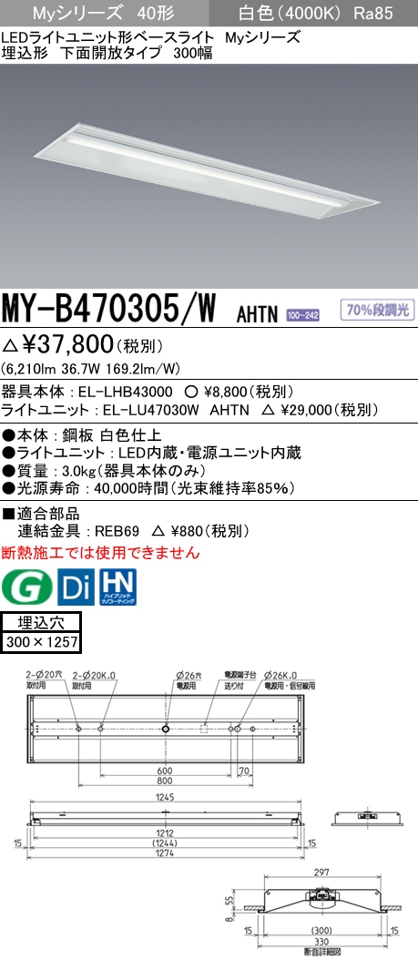 MY-B470405/W AHTN 埋込形ベースライト 300幅 省電力タイプ FHF32(高出力)x2相当 白色