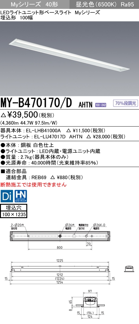 MY-B470170/D AHTN 埋込形ベースライト 100幅 高演色タイプ FHF32(高出力)x2相当 昼光色