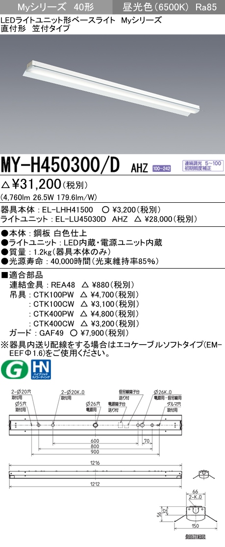 ※現在最短入荷3月以降となっております。定格: 初期照度補正付連続調光5-100%