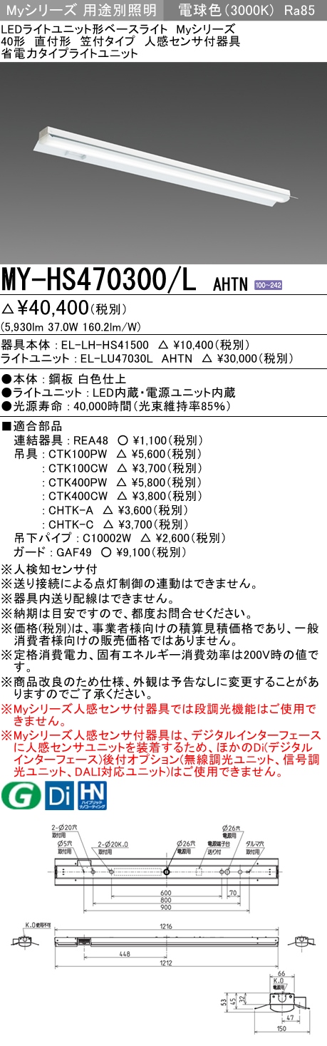 MY-HS470300/L AHTN 笠付照明器具 省電力タイプ FHF32(高出力)x2相当 人感センサー付 電球色
