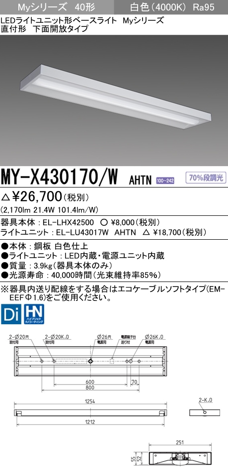 MY-X430170/W AHTN 直付下面開放形照明器具 高演色タイプ FHF32(高出力)x1相当 白色