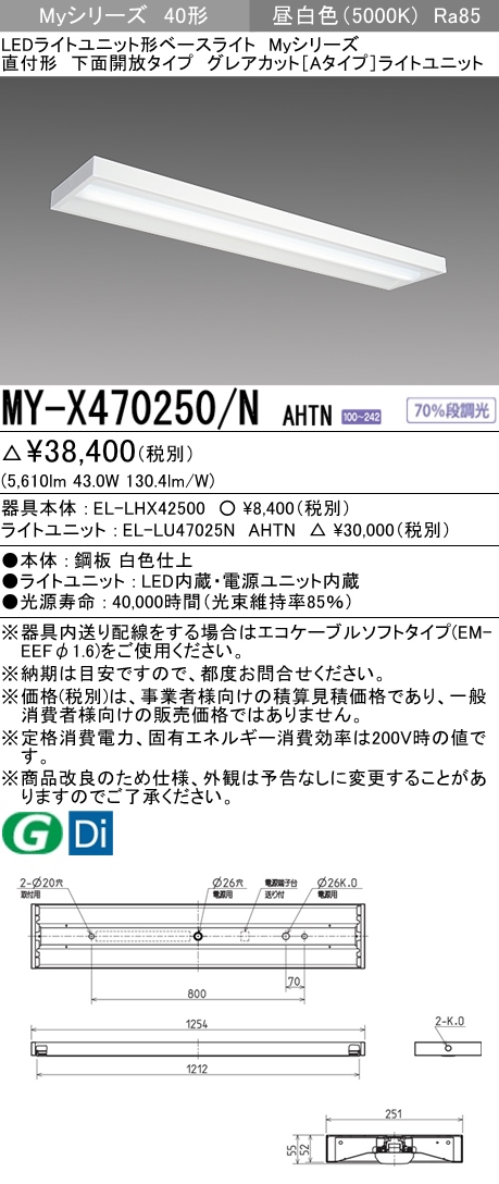 MY-X470250/N AHTN 直付下面開放形照明器具 グレアカットタイプ FHF32(高出力)x2相当 昼白色