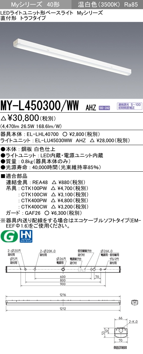 ※現在最短入荷3月以降となっております。定格: 初期照度補正付連続調光5-100%