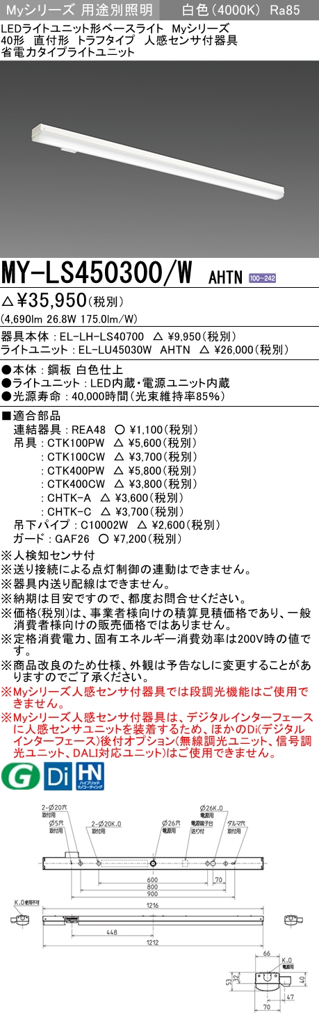 MY-LS450300/W AHTN トラフ形照明器具 省電力タイプ FHF32(定格)x2相当 人感センサー付 白色