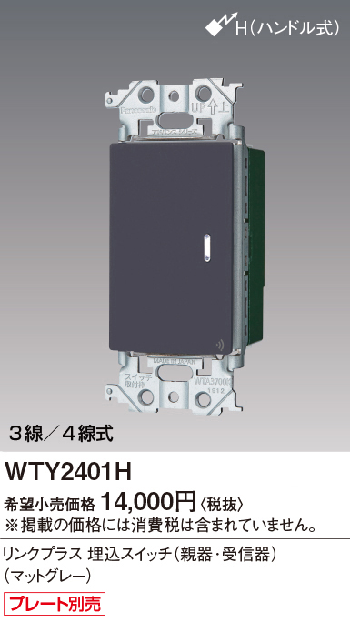 品番:WTY2401H品名:アドバンスシリーズリンクプラス埋込スイッチ(親器・受信器)(マットグレー)