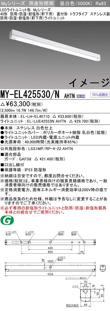 定格: 固定出力・段調光機能付明るさ: FHF32形x2灯器具 定格:出力相当