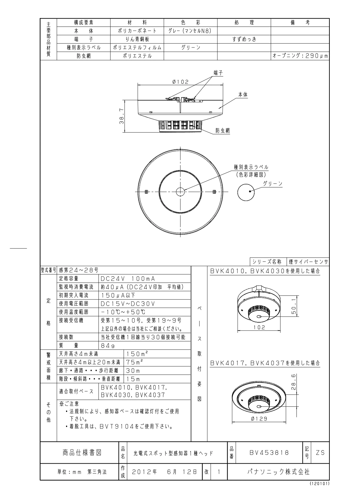 品番 BV453818品名 光電式スポット型感知器1種ヘッド(試験機能付)(自動試験機能対応)
