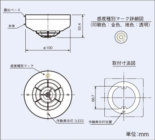 ASB-2LYA 差動式スポット型感知器(露出型)(自動試験機能付)感知器ヘッド,自動試験機能付