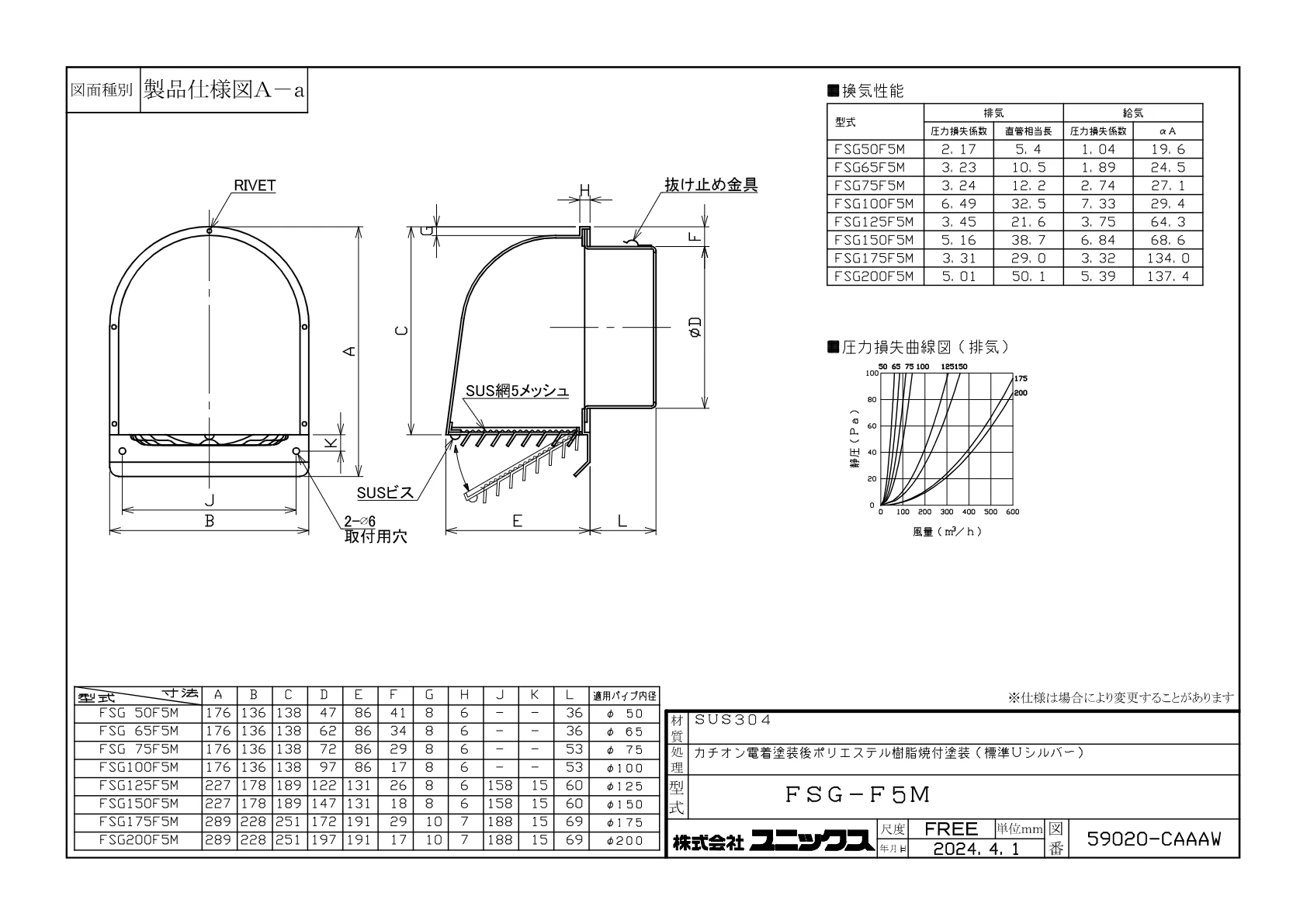 - 換気部材(ユニックスなど > パイプフード > FSG-F 深型 横ガラリ > φ200