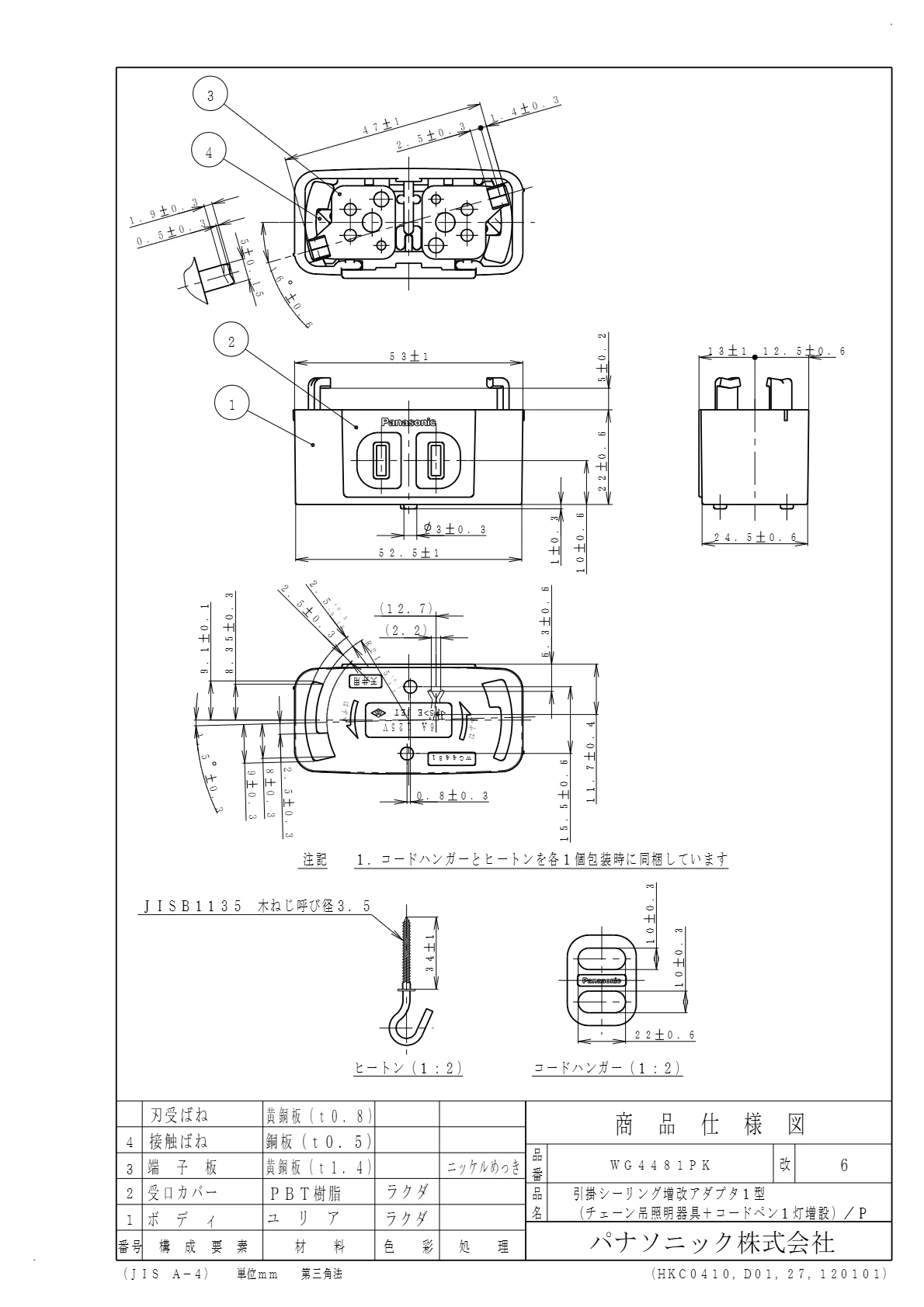 品番:WG4481PK品名:引掛シーリング増改アダプタ1型