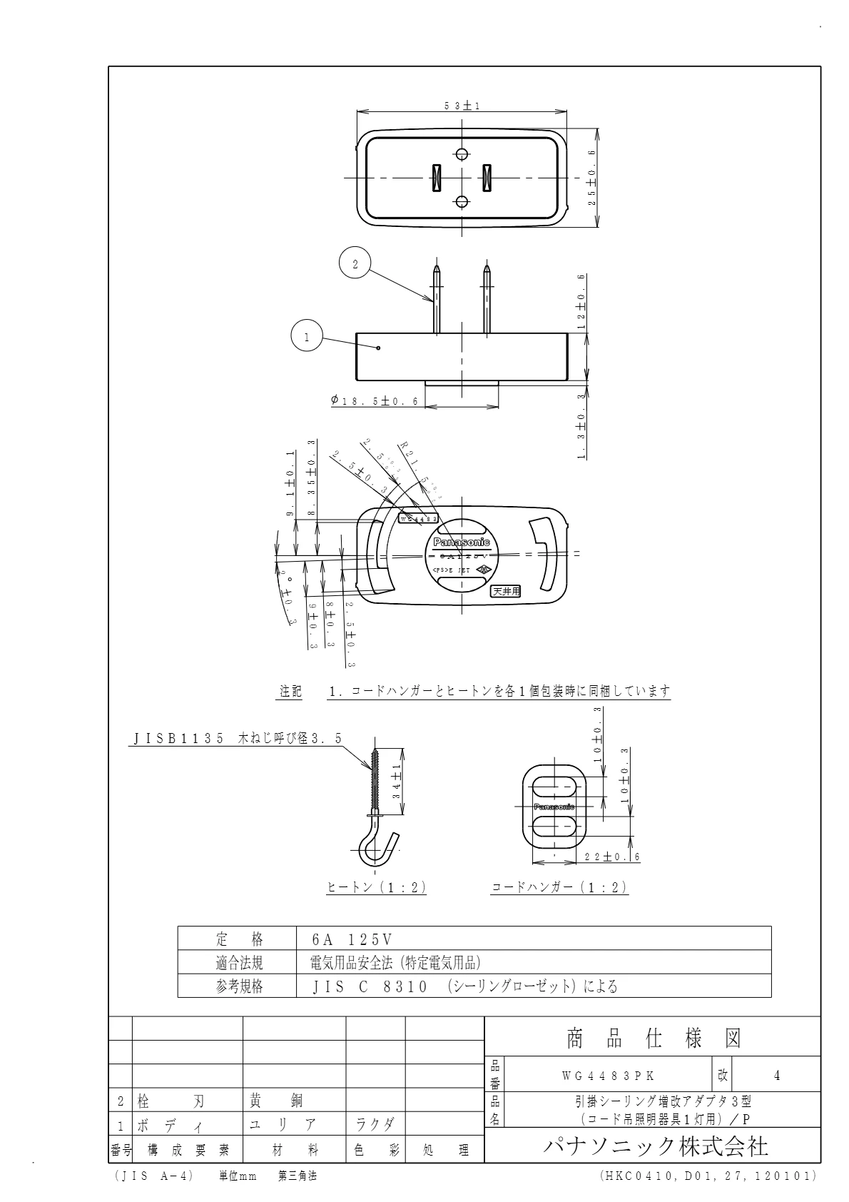 品番:WG4483PK品名:引掛シーリング増改アダプタ3型