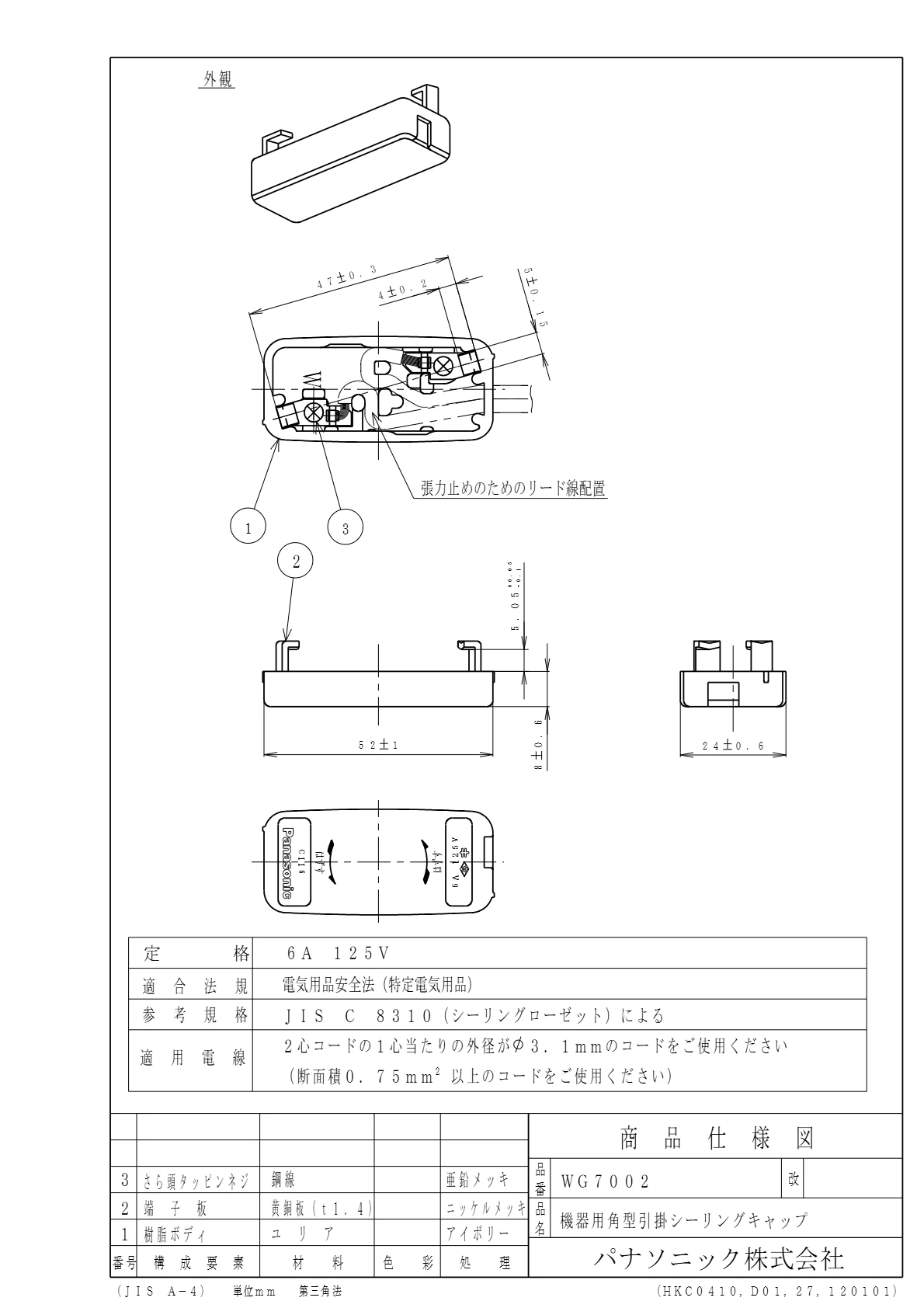 品番:WG7002品名:器具用角型引掛シーリングキャップ