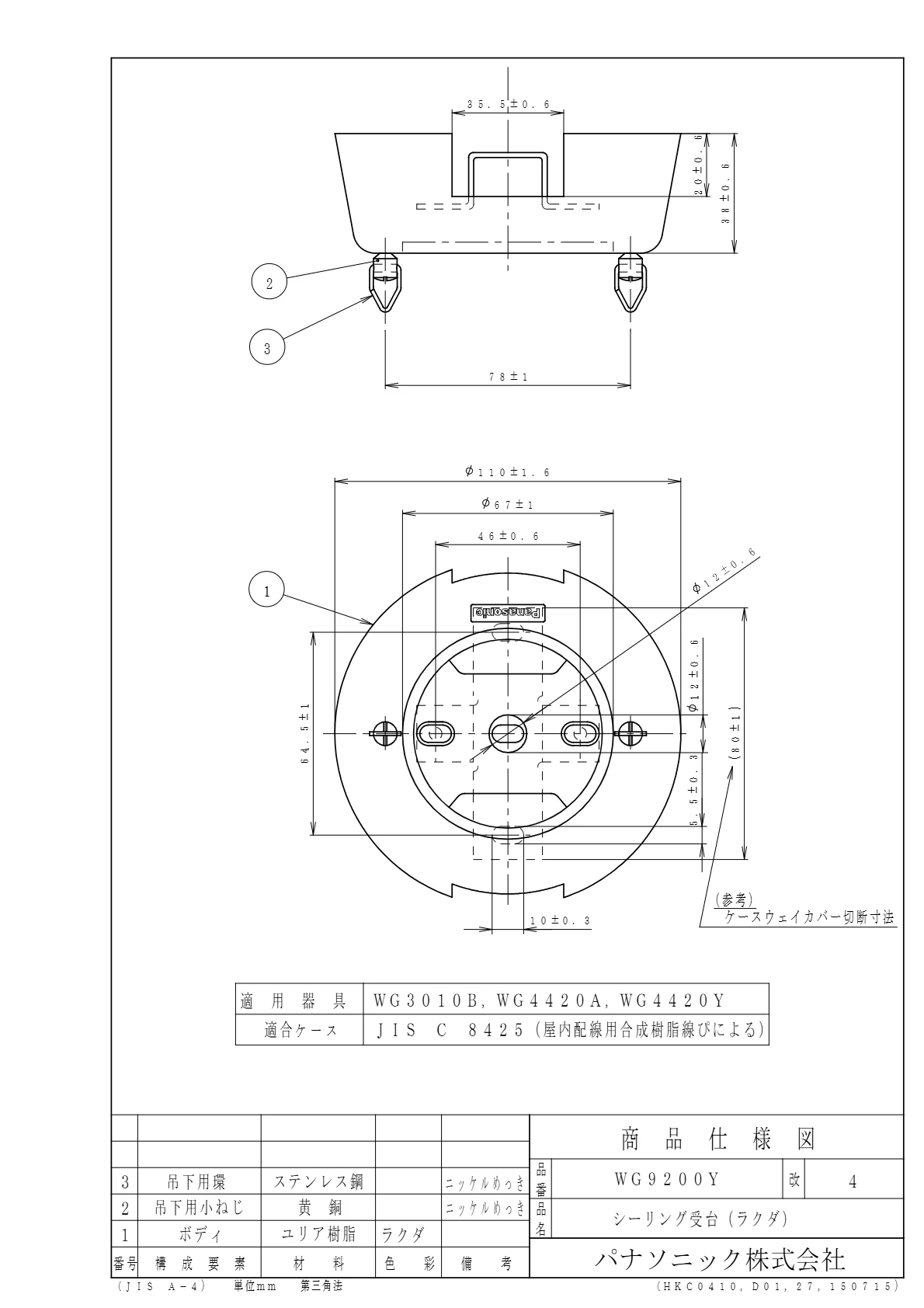 品番:WG9200Y品名:シーリング受台(ラクダ)