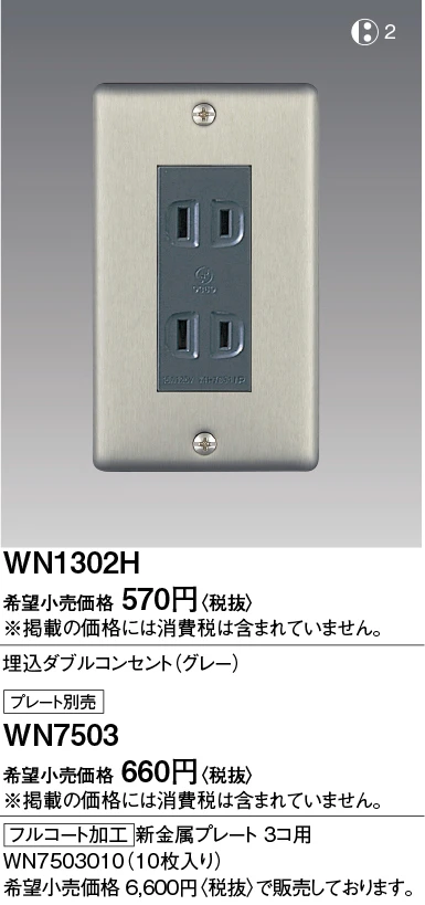 品番:WN1302H品名:埋込ダブルコンセント(グレー)